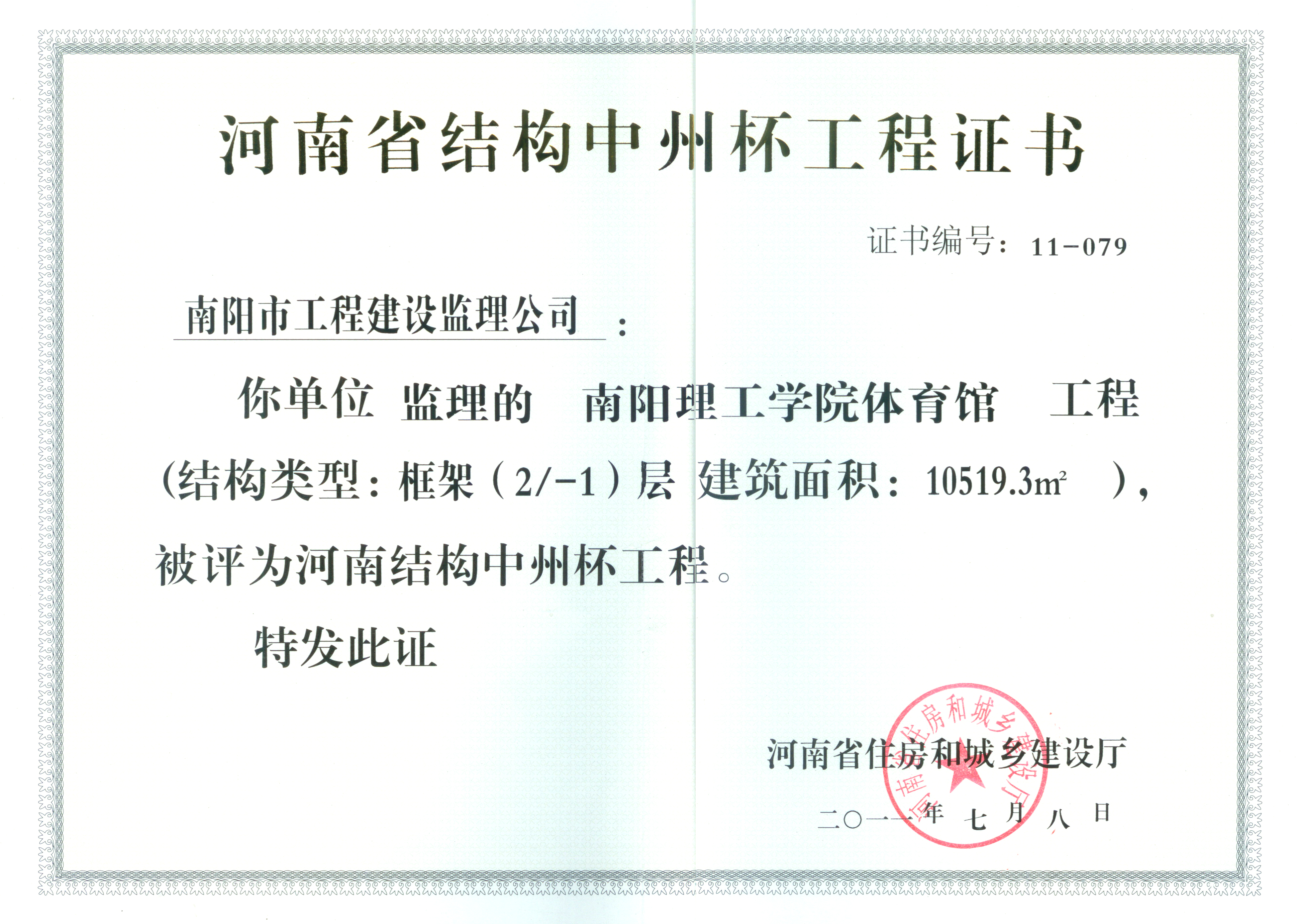 2011河南省结构中州杯(理工体育馆)