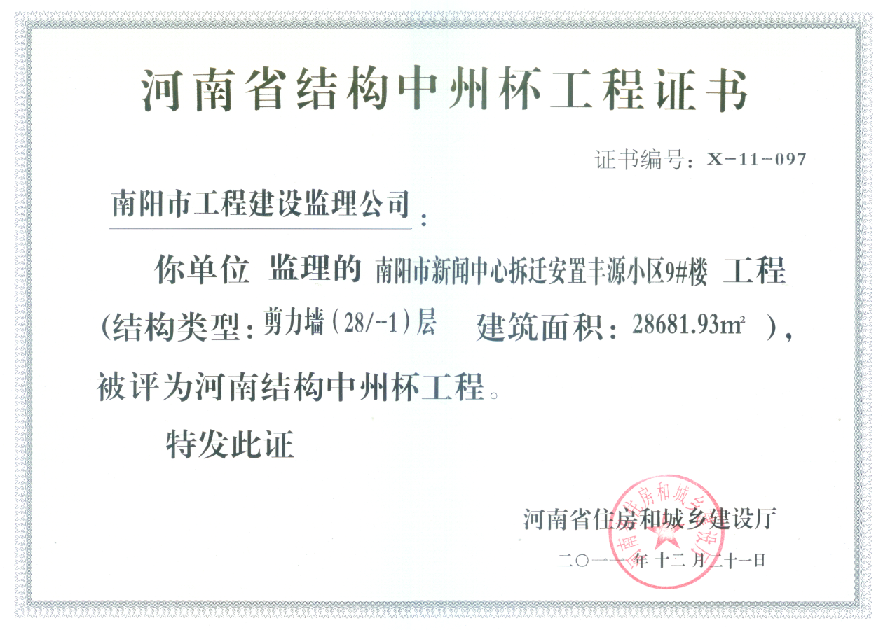 2011年河南省结构中州杯(丰源小区9#)