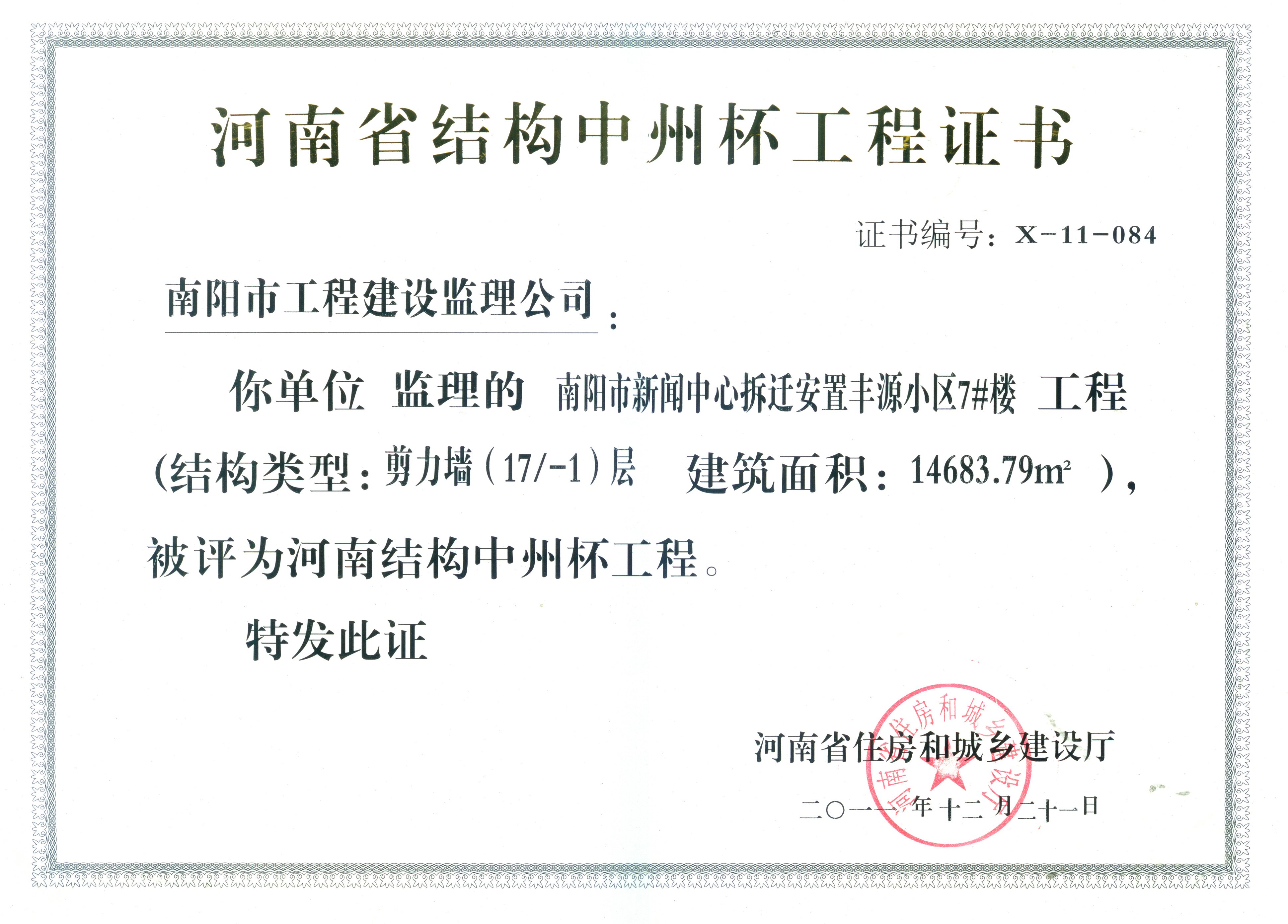 2011河南省结构中州杯(丰源小区7#)