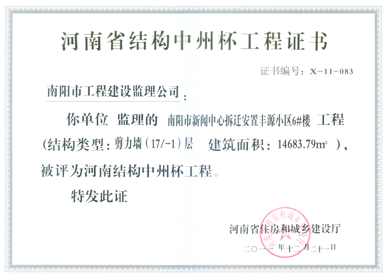 2011年河南省结构中州杯(丰源小区6#)