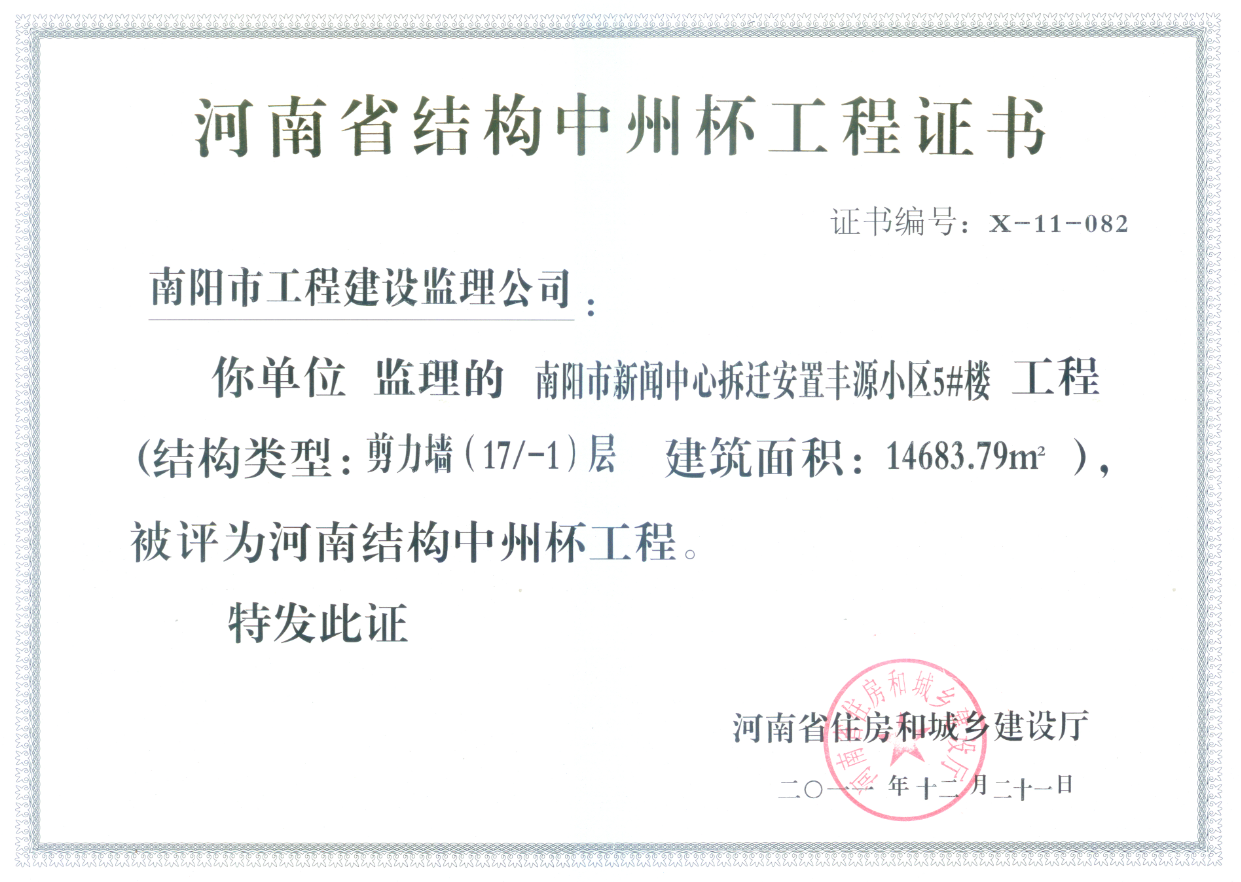 2011年河南省结构中州杯(丰源小区5#)