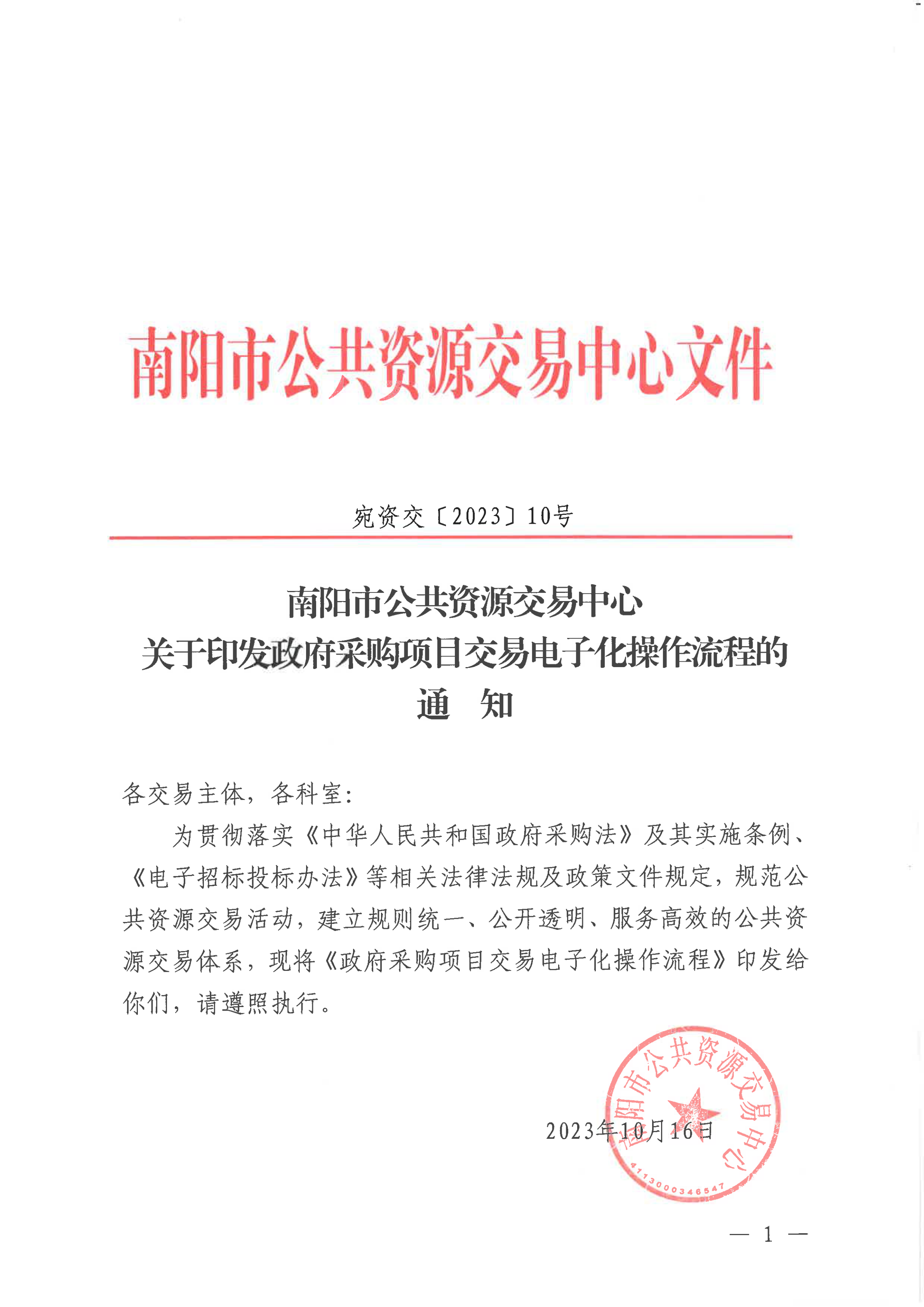 | 关于印发政府采购项目交易电子化操作流程的通知 (宛资交【2023】10号) | |||
