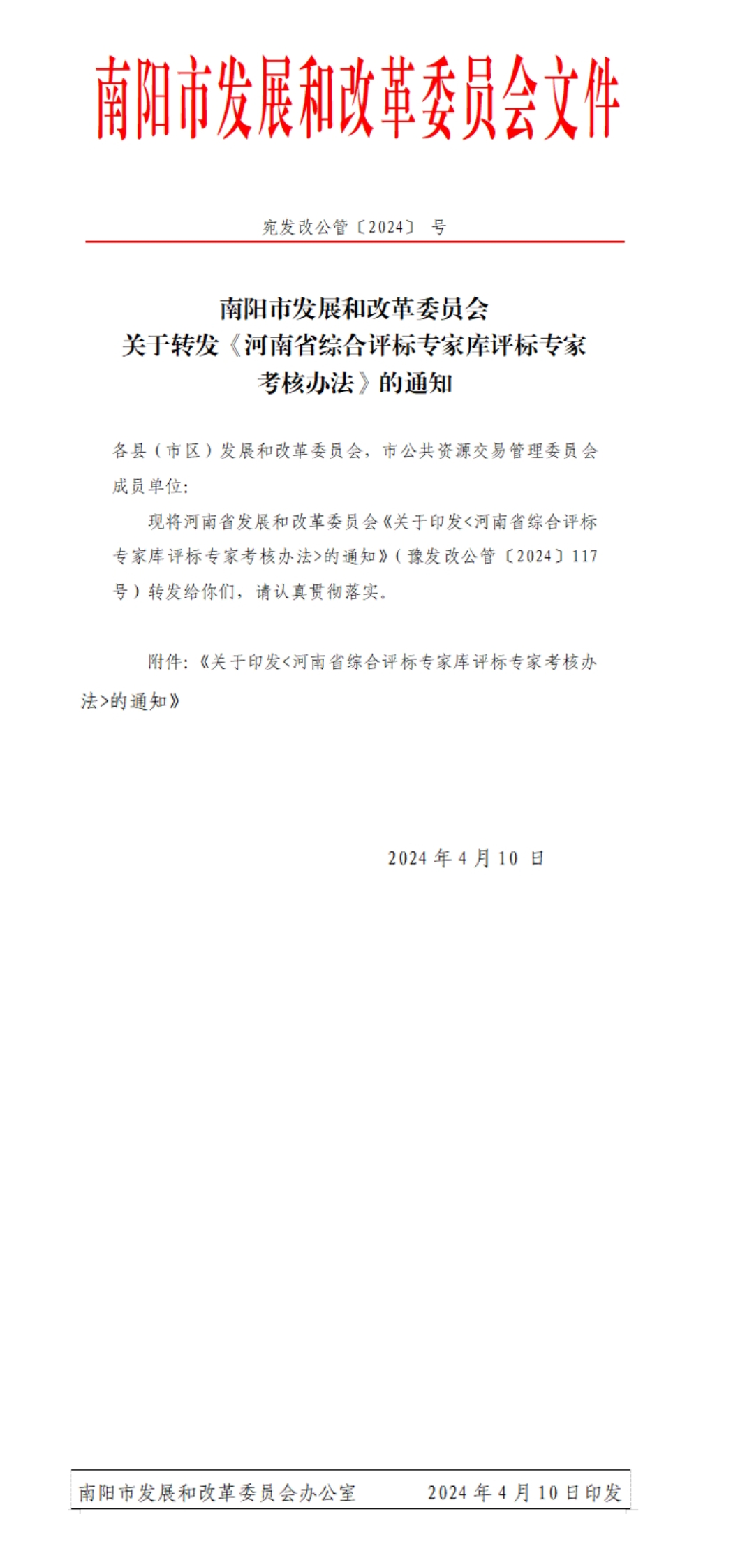 | 南阳市发展和改革委员会关于转发《河南省综合评标专家库评标专家考核办法》的通知 |
