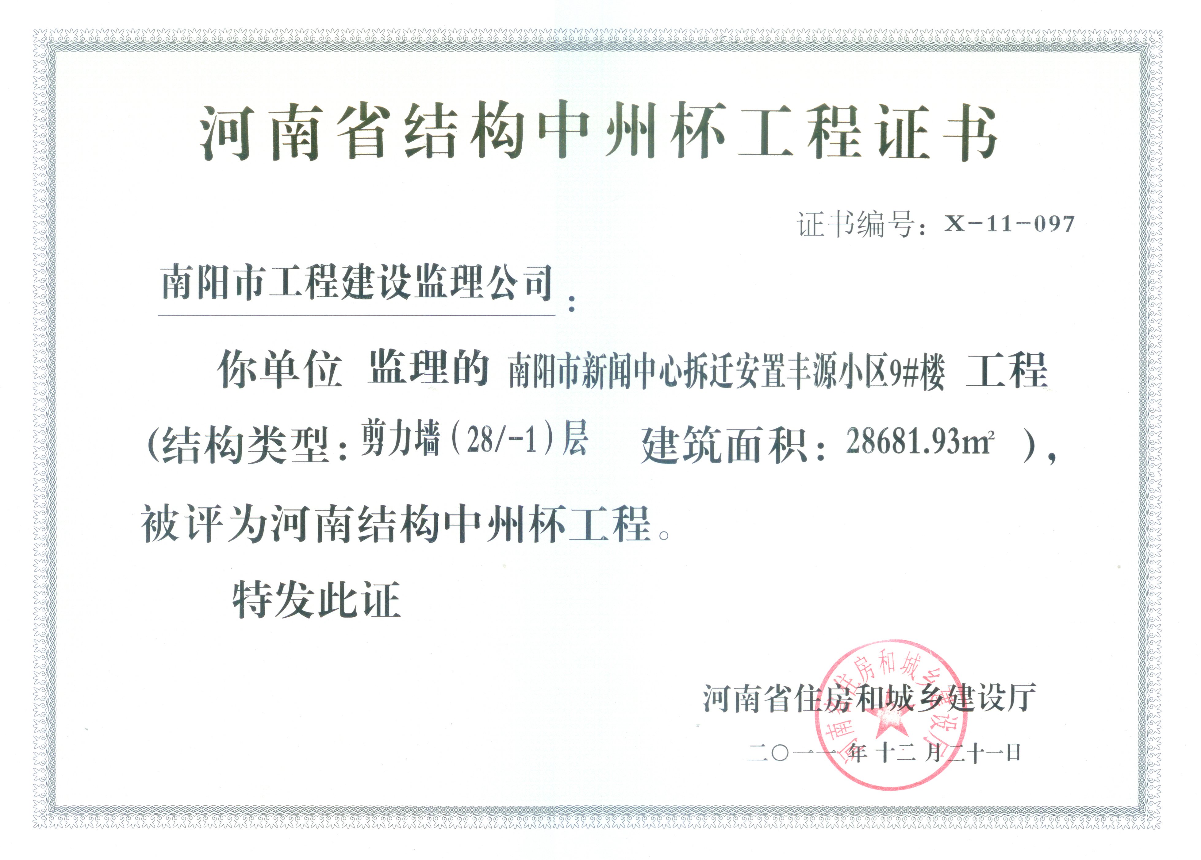| 2011年河南省结构中州杯(丰源小区9#) |